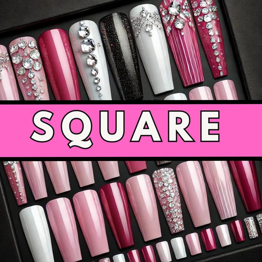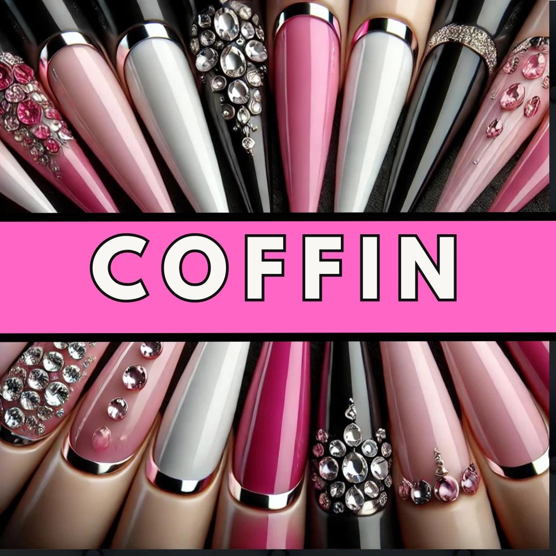 Find the perfect press-on nails that match your vibe! Whether you're into square, almond, stiletto, or coffin, we've got a shape for every style – chic, cute, and always on point!"