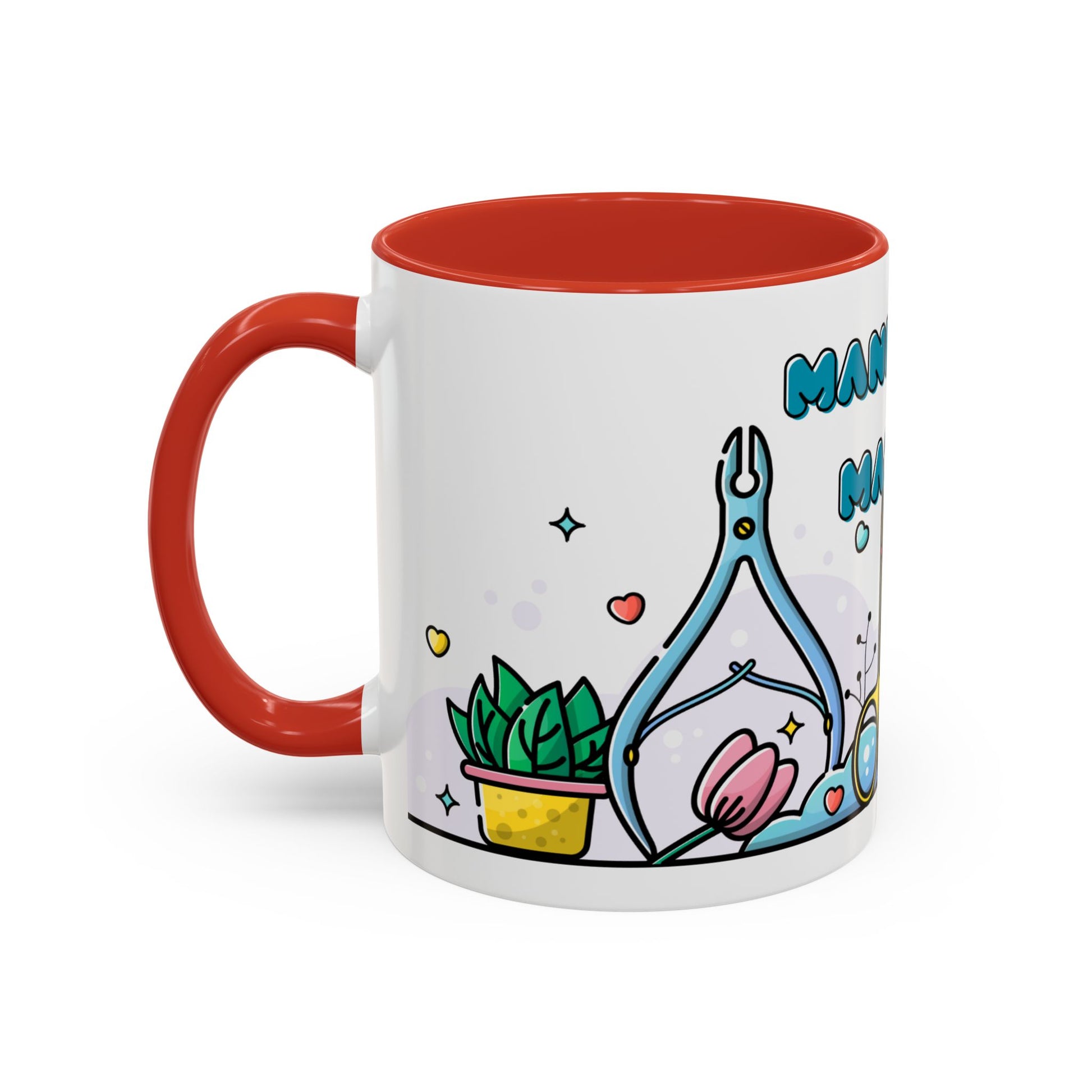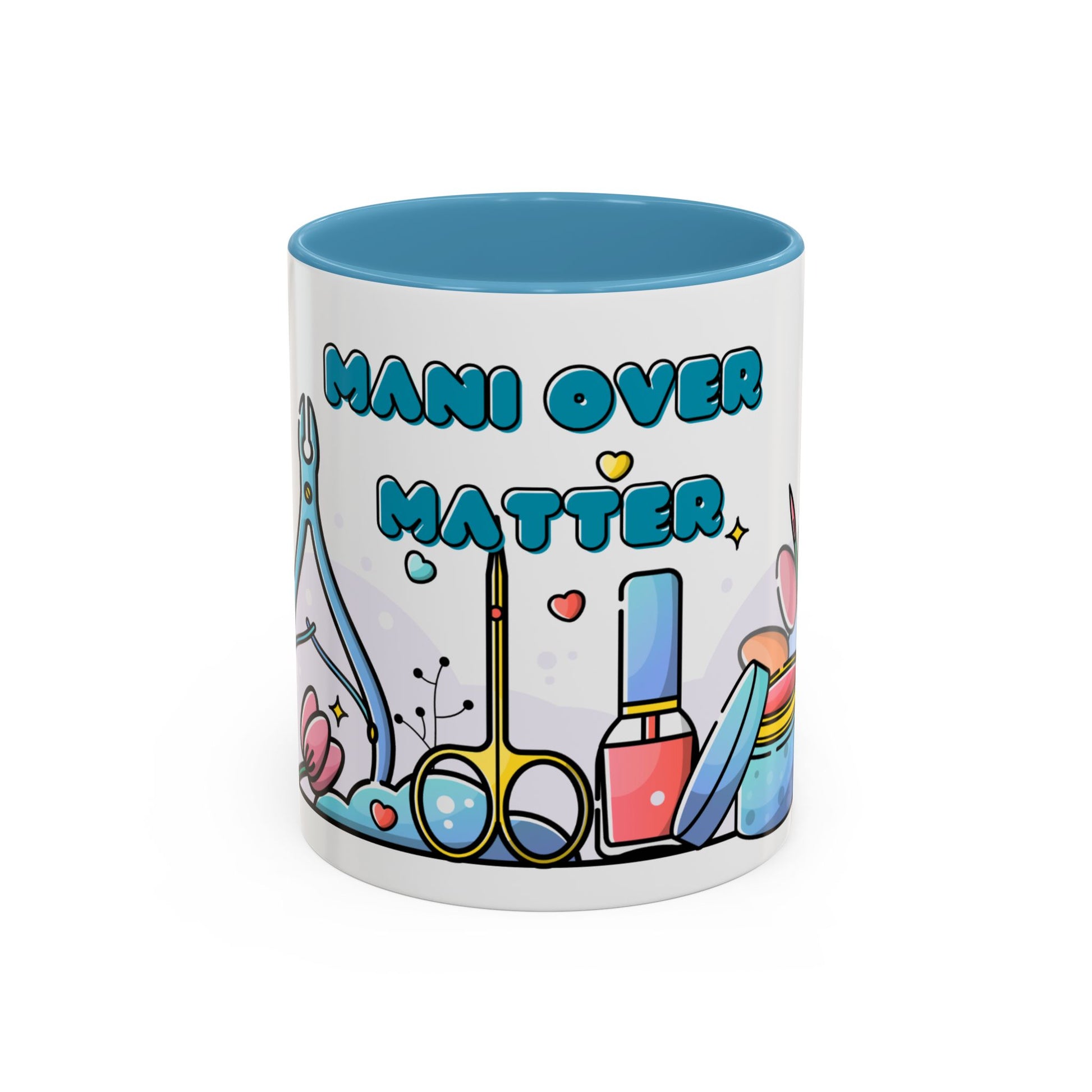 Start your day with motivation and a pop of color! The "Mani Over Matter" Accent Mug is the perfect companion for your morning coffee, afternoon tea, or late-night brainstorming session. Designed for nail lovers, beauty enthusiasts, and creative spirits, this mug blends style and functionality to make every sip feel empowering.